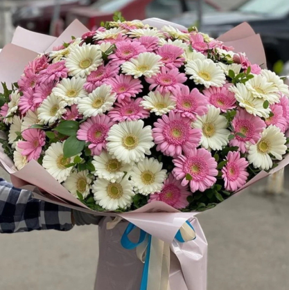 Букет из 101 белой и розовой герберой | Купить в Чите